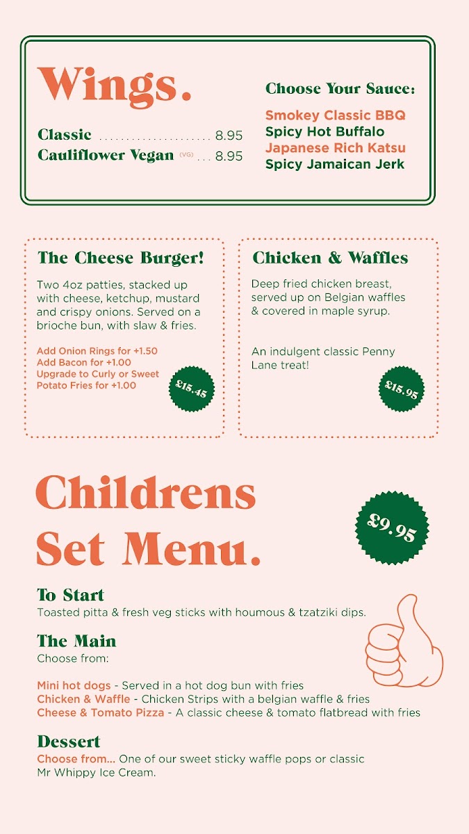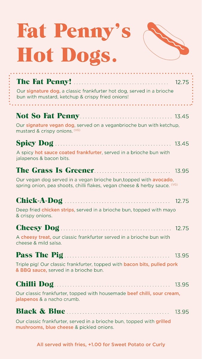Welcome to Penny Lane, a vibrant dining destination located in the heart of Nottingham at 9 Fletcher Gate. This unique venue combines delicious food with an exciting atmosphere, making it an ideal spot for families, couples, and groups alike. The menu features an impressive selection of Fat Penny's Hot Dogs, including the spicy Spicy Dog and the tantalizing ChickADog, each priced affordably. Additionally, the Deli Sandwiches cater to diverse tastes, from the savory Steak & Onion to the delightful Halloumi & Chilli.
